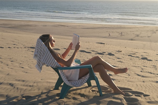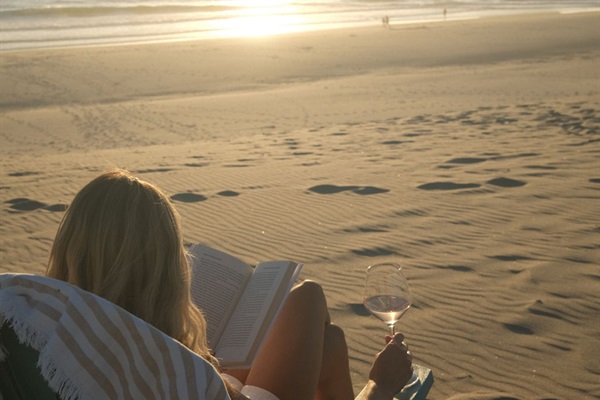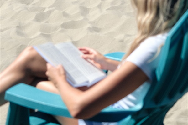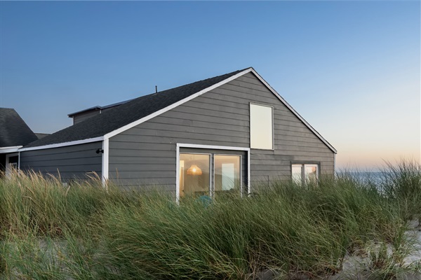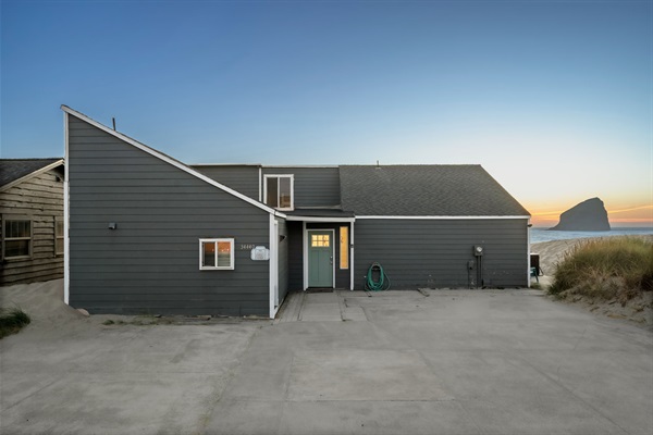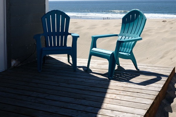 Private enclosed outdoor courtyard with table, bbq, box of toys, and hanging lights for ambiance.